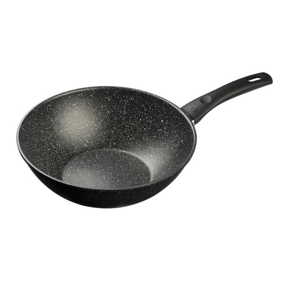 Ø superiore 28 cm H. 7,5 cm Rivestimento antiaderente Nerolite resistente ai graffi Manico ergonomico con sistema di surriscaldamento ritardato Adatto per piani cottura a gas, elettrico ed induzione Lavabile in lavastoviglie Made in Italy
