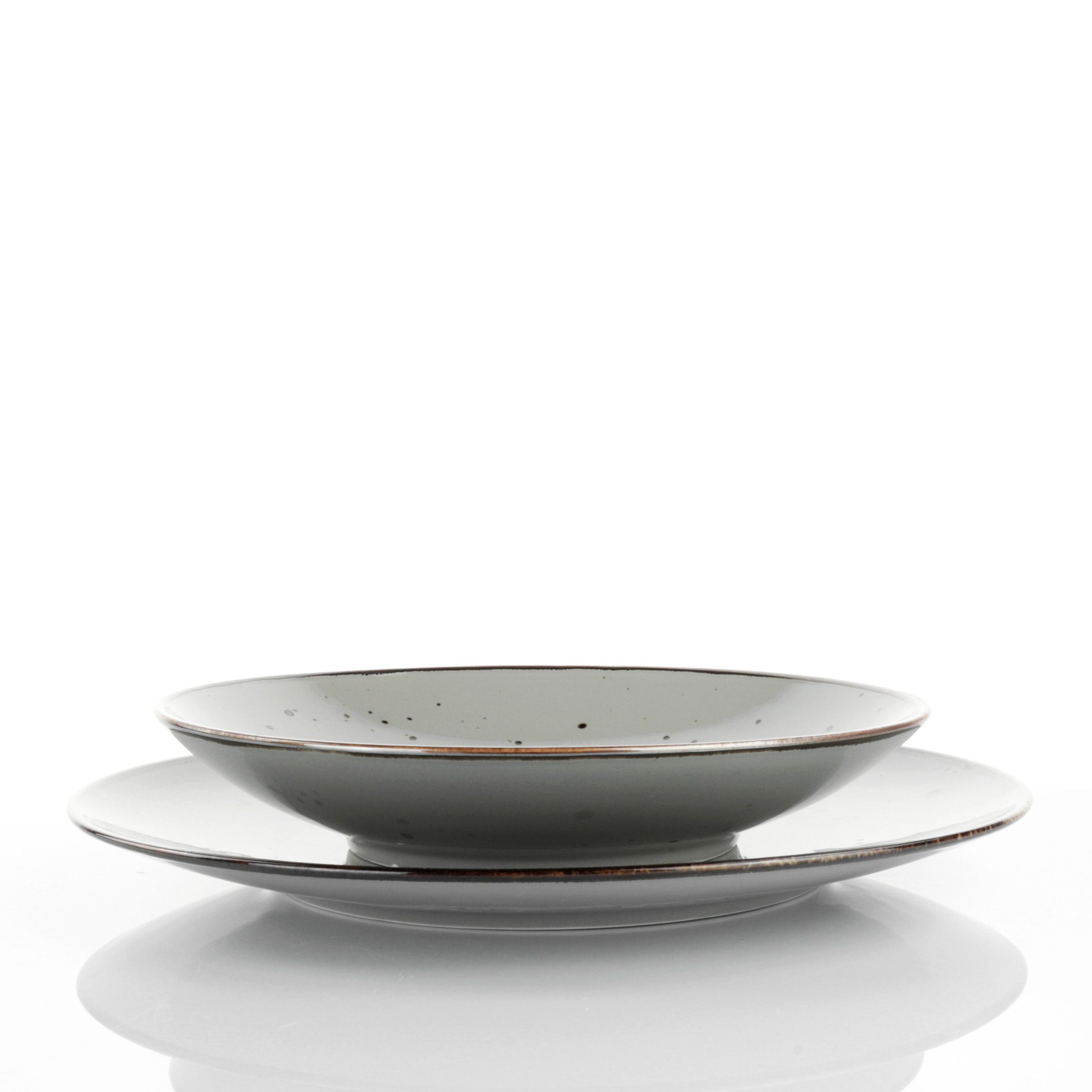 Il set include: 6 piatti piani Ø 28 cm. 6 piatti frutta Ø 22,5 cm. 6 piatti fondi Ø 22 cm. Colore: Green - Verde Materiale: Porcellana rifinita a mano e quindi ogni articolo è diverso da tutti gli altri Colore reattivo e privo di piombo. Resistente al microonde. Lavabile in lavastoviglie.