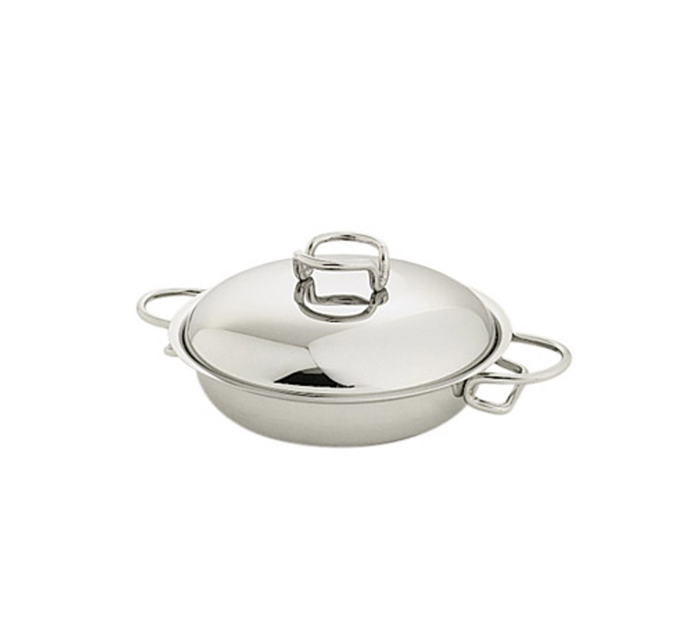 Speciale coperchio in acciaio che, oltre a chiudere perfettamente la pentola, consente di conservare i vapori e le sostanze rilasciate durante la cottura. Se rovesciati possono trasformarsi in sotto pentola. I manici e il pomolo di acciaio sono stati progettati pensando al comfort e alla sicurezza della presa. Grazie al particolare design dei manici è possibile sollevare la pentola con una sola mano.