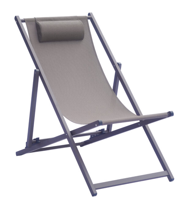Colore textilene: Grigio Tubo in alluminio doppio Tettuccio parasole regolabile Da chiuso il lettino resta dritto. Non si chiude a libro. Ideale per lidi mare o bordo piscina.